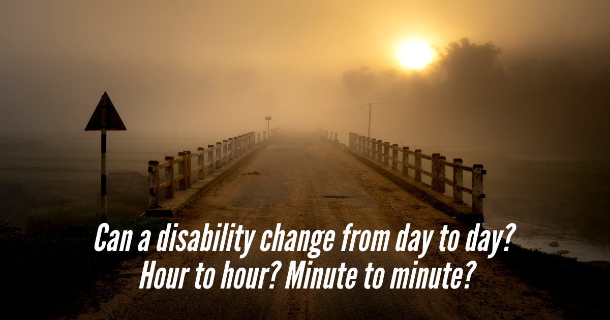 Can a disability change from day to day? Hour to hour? Minute to minute? Mine does.